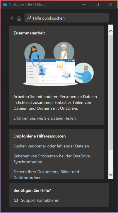 Da wären zum einen das Microsoft 365 Admin Center. Dort unter Support – New Service request. Und dann die Möglichkeit, über den Syncclient, also das OneDrive Sync Client Symbol in der Benachrichtigungszeile. Dort unter Hilfe und Einstellungen und Hilfe erhalten