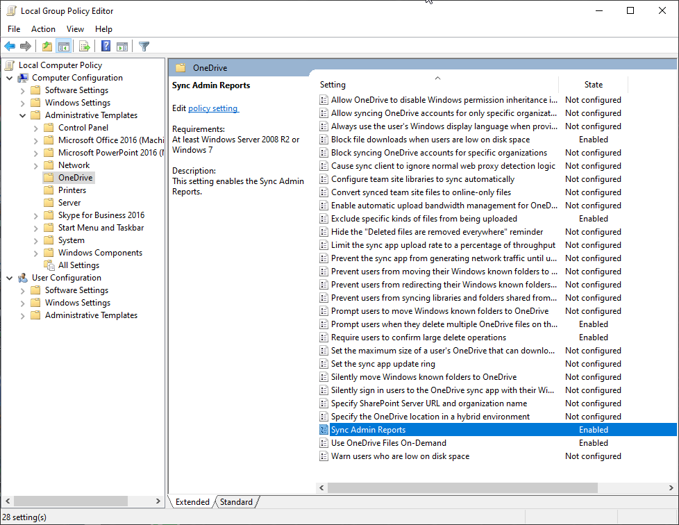 Roll out Group Policy Sync Admin Reports to all Windows 10 devices.