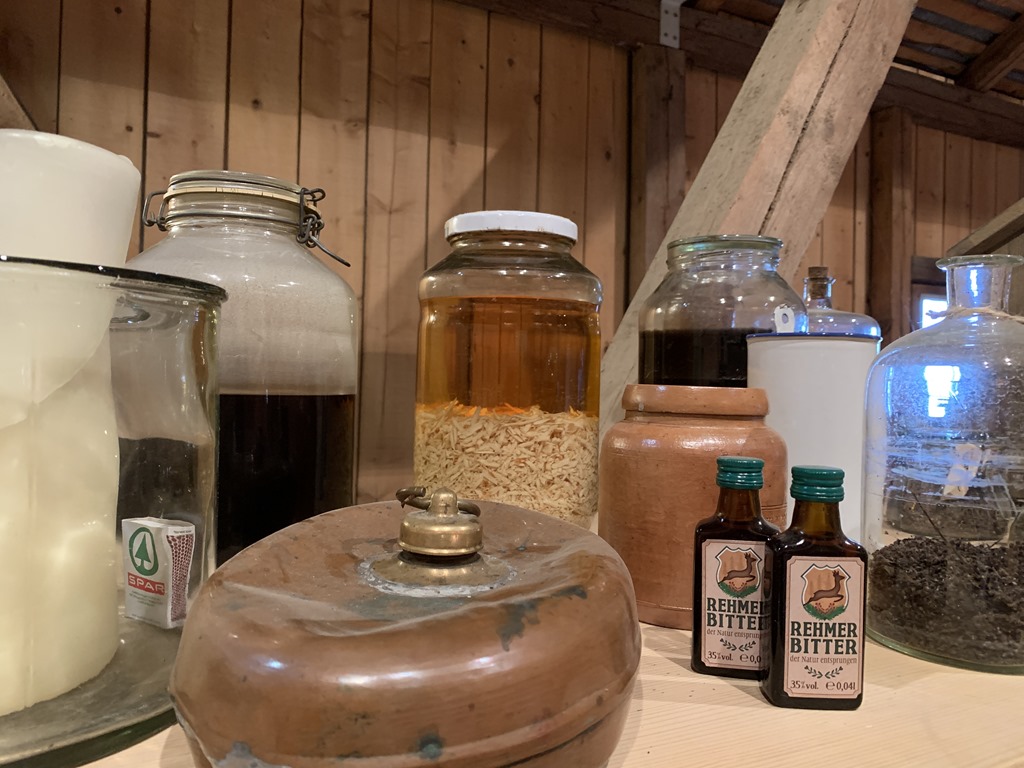 Und ein kleiner Laden bringt die Endprodukte an den Tag. Nein, eine von den 8 goldenen und sehr teuren, handgeblasenen Ginflaschen habe ich nicht entdeckt, aber es duftet überall nach Kräutern. Wer irgendwann einmal in den Bregenzerwald kommt, sollte den Abstecher auf jeden Fall machen. Adresse und weitere Informationen gibt es auf der eigenen Homepage der Löwen Brennerei. Der Weg dorthin hat sich auf jeden Fall gelohnt.