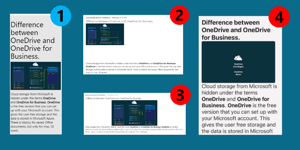 Schon seit dem Start der Entwicklung des Community Bot for OneDrive kämpfen wir mit der visuellen Ausgabe. Zum Einen mit der visuellen Ausgabe der Antwort im Qna Maker, die mit Markdown beschrieben ist. Hier 2 Beispiele, die zeigen, dass die Ausgabe im qnAMaker korrekt ist, aber mangelhaft für die Teams Ausgabe.