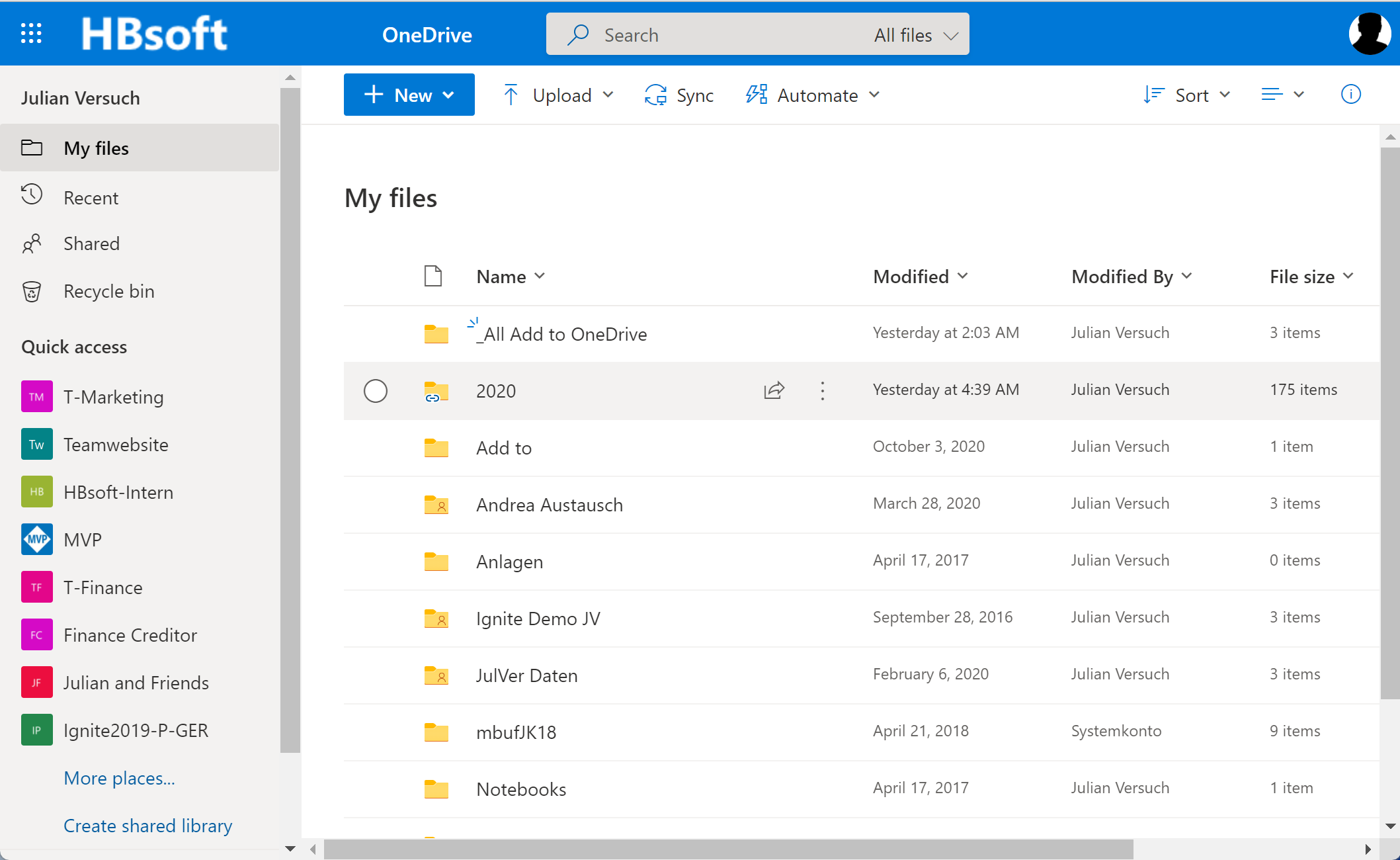 Alle anderen Funktionen entsprechen denen von OneDrive for Business