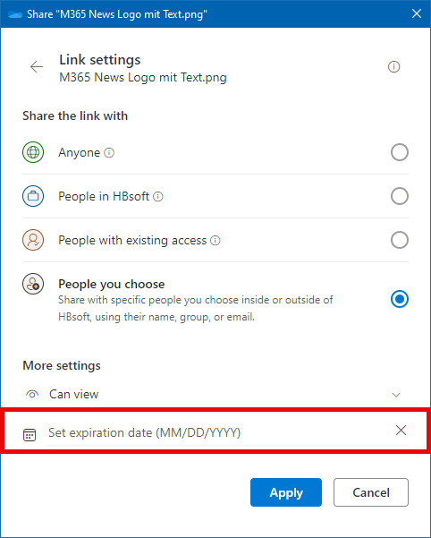 It is therefore up to the administrators to make this new feature appealing to users so that the link closes itself at some point. This does not always work, but at least the user can also use it when sharing within the organization.